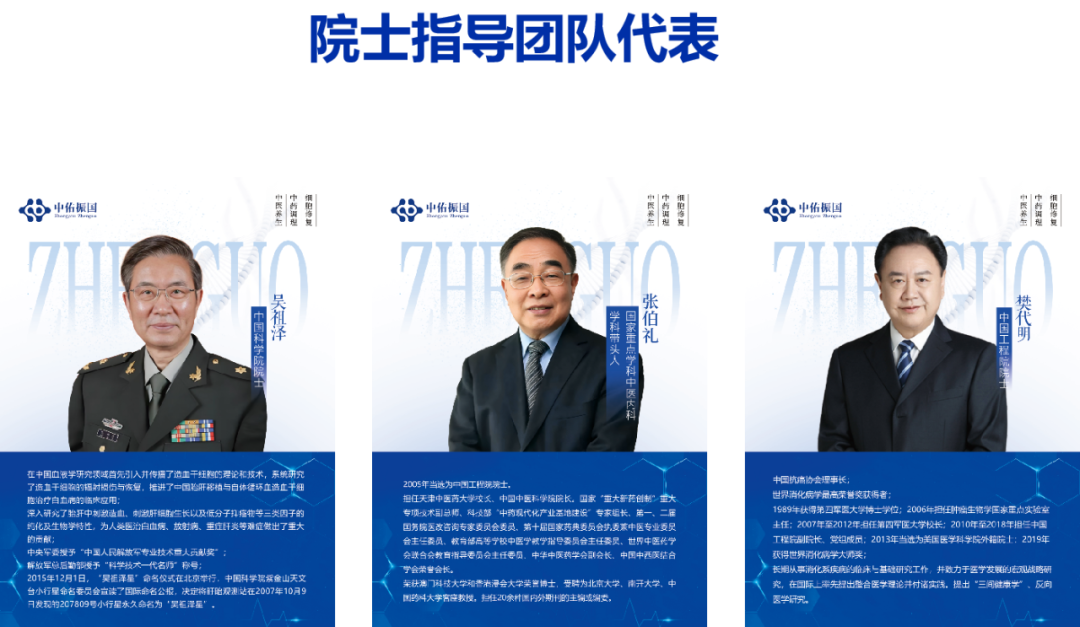 集团公司拥有诸多国内外著名两院院士及科学家团队进行技术交流、成果转换及应用,如:享受国务院津贴的王振国教授;欧洲干细胞之父一科隆大学海席勒教授;中国科学院任培根教授;上海交大的徐辉明教授,吴祖泽院士、张伯礼院士、樊代明院士、陈润生院士、张运院士、张大宁院士。