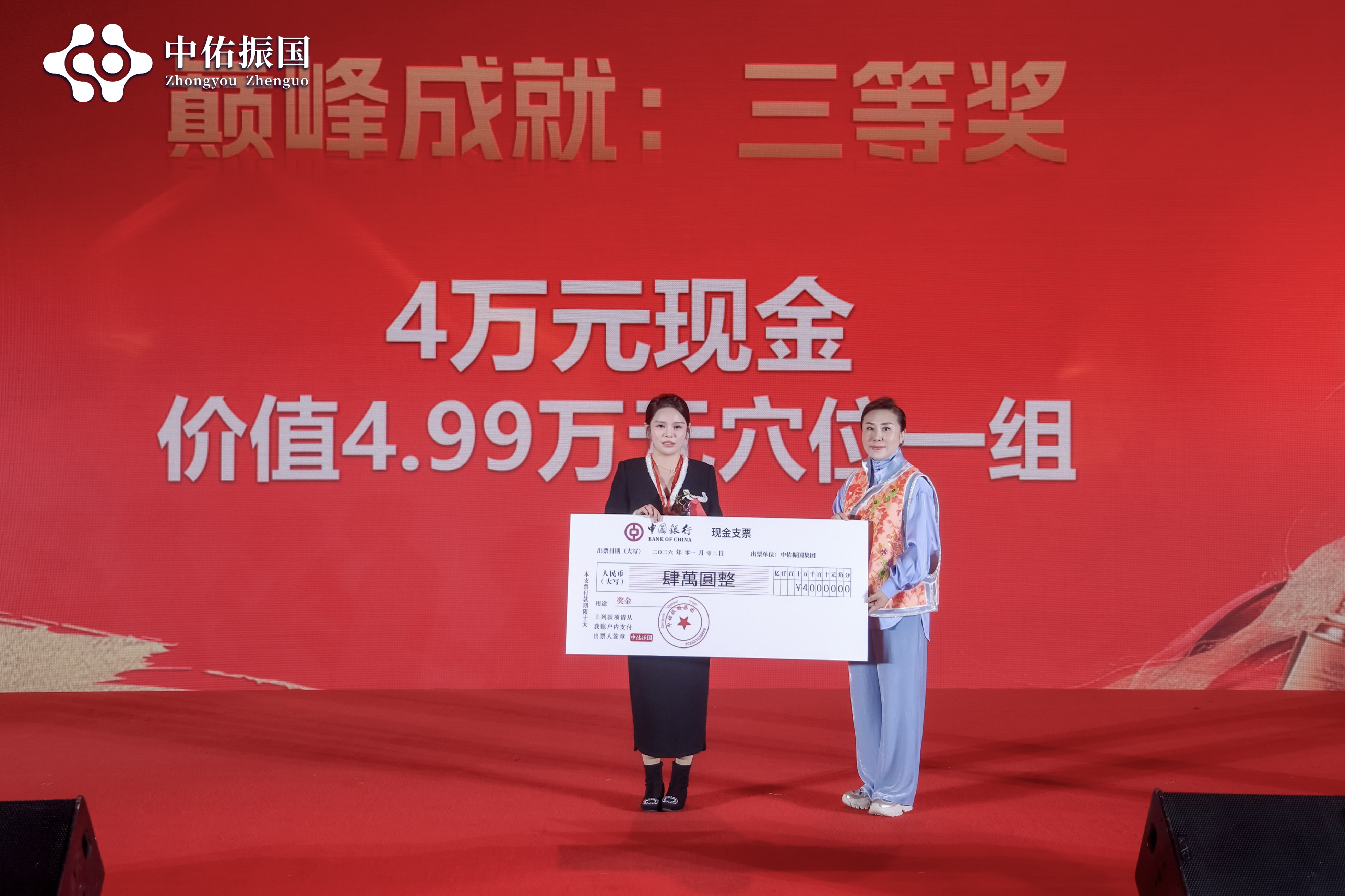 王艳凭借一年间的华丽蜕变摘得巅峰成就三等奖。她动情回顾了从行业门外汉到 “细胞大户” 的成长历程,感恩平台让她实现了全方位的自我提升。她自豪地分享了自身及用户通过细胞调理收获健康与自信的真实案例,真挚的感言中满是对中佑振国未来发展的美好祝愿与坚定信心。
