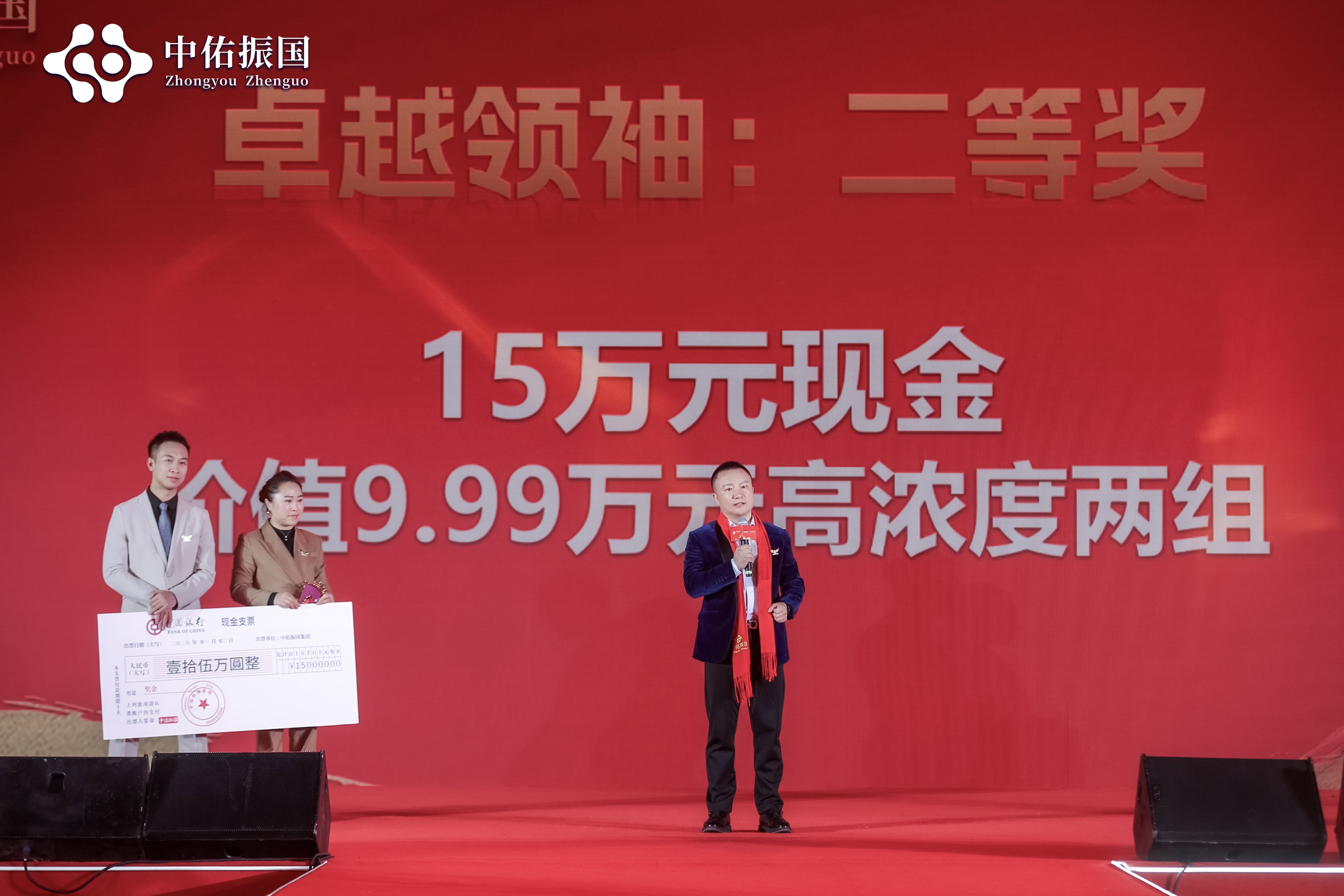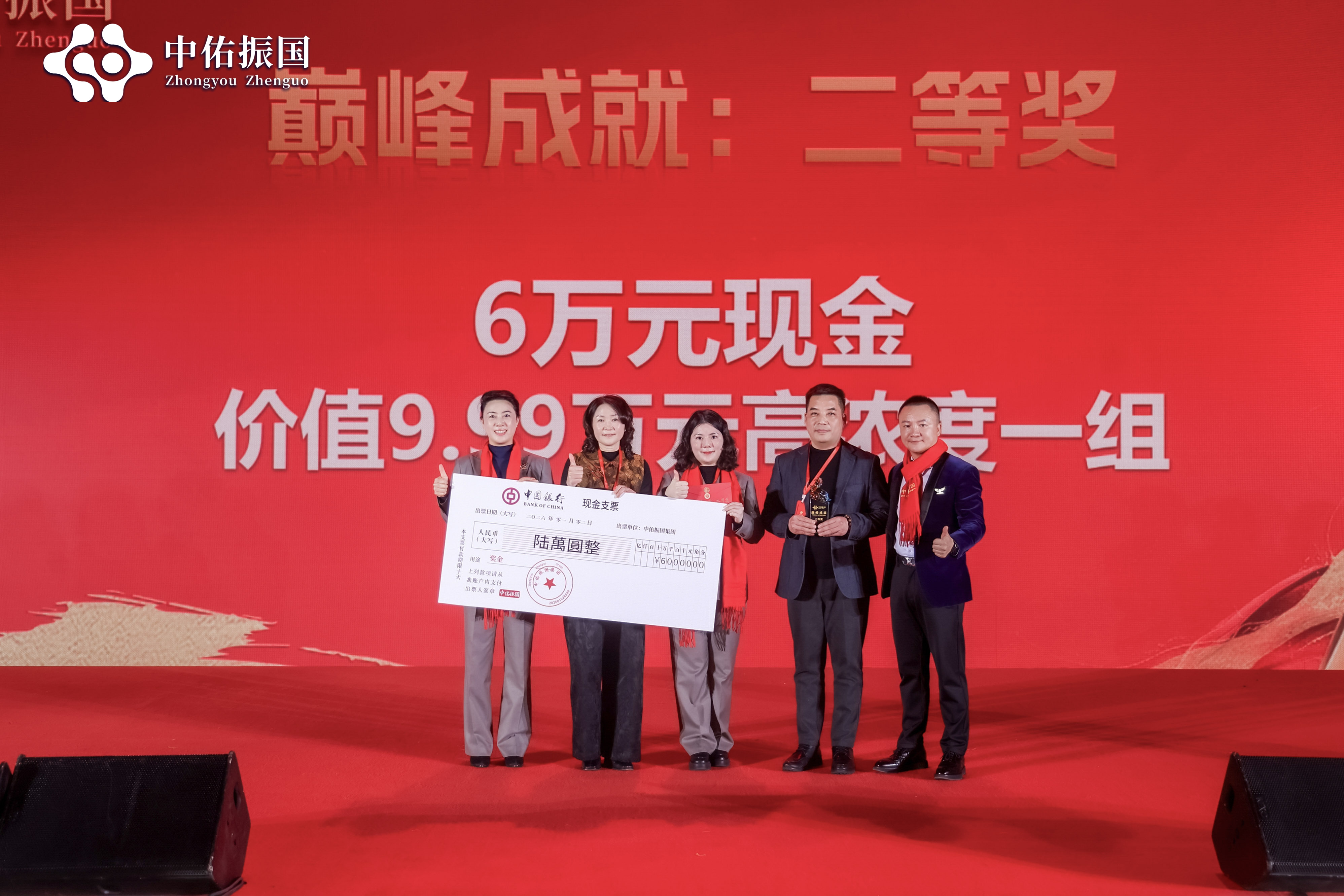 宁波团队凭借优异的市场表现荣获巅峰成就二等奖,代表王珍登台发表感言,他将这份荣誉归功于团队内每一位家人的并肩作战,深情感谢了所有默默奉献的伙伴。在发言尾声,王珍送上了双重祝福,祝愿中佑振国蒸蒸日上,也祝现场嘉宾 2026 年 “马上” 有钱、好运常伴,温馨话语点燃了全场的喜庆氛围。